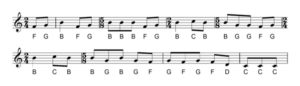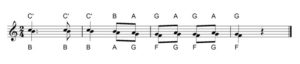 Bartók’s scale has a distinctive sound – here it is for our (white notes) version of the melody.