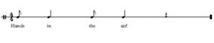 Make up new rules, for example use the words ‘hands in the air’ to make the following rhythm: