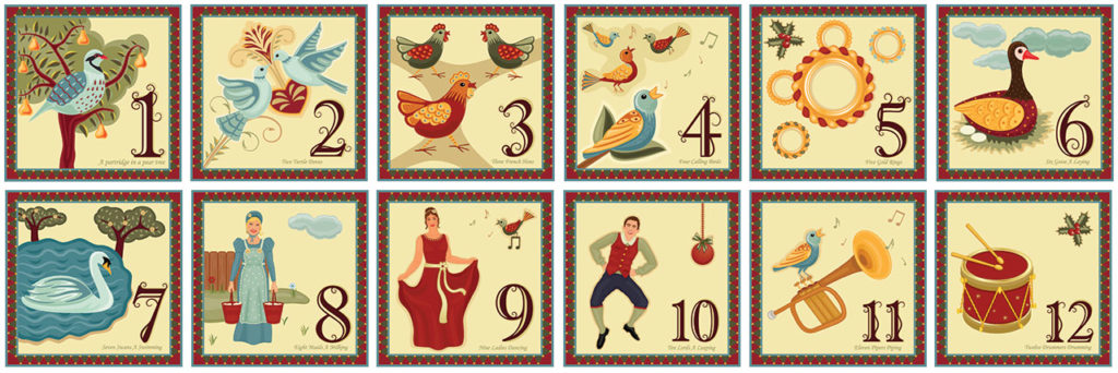 “On the second day of Christmas, my true love sent to me two turtle doves and a partridge in a pear tree”